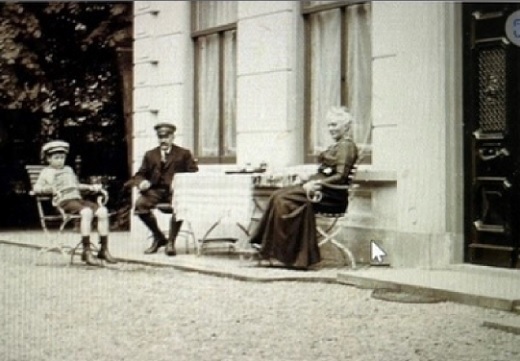 Mevrouw Johanna van IJsendijk voor haar villa in Baarn